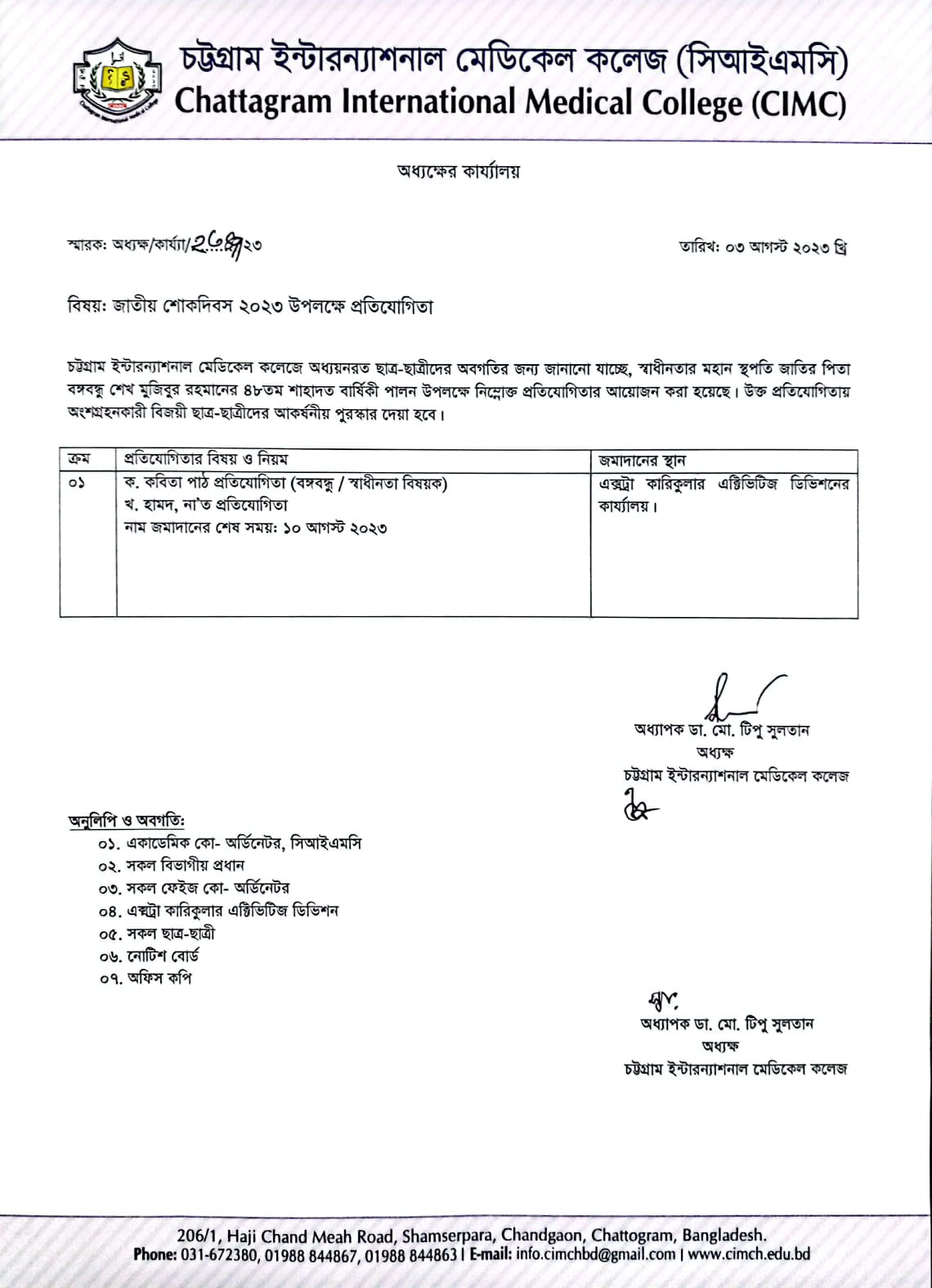 জাতিয় শোক দিবস ২০২৩ উপলক্ষে প্রতিযোগিতা