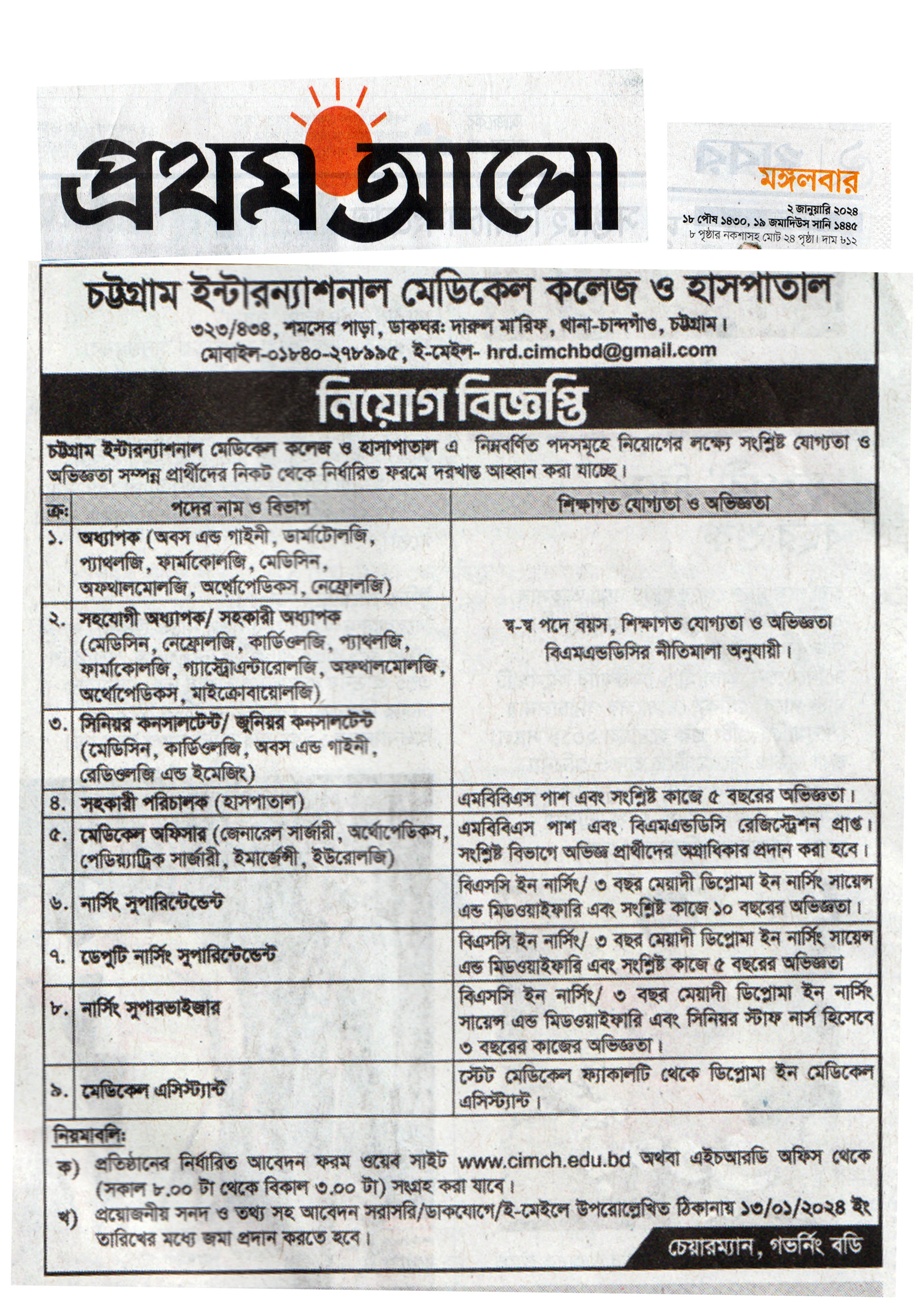 নিয়োগ বিজ্ঞপ্তি |