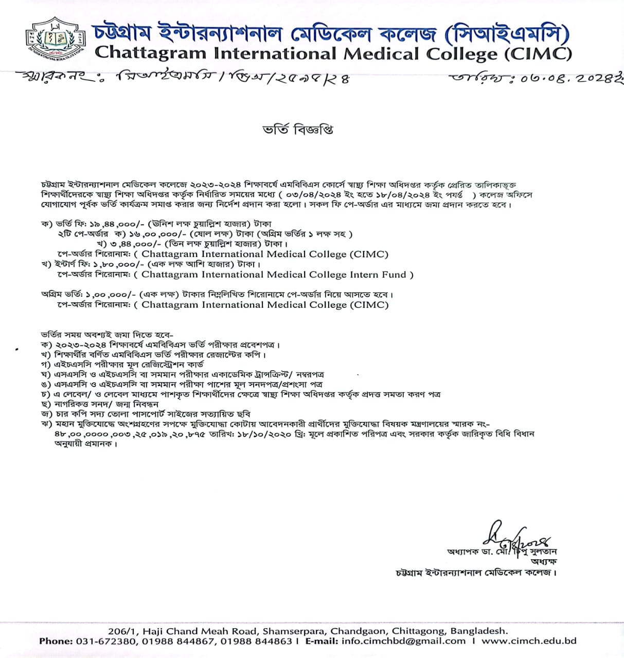 Admission notice