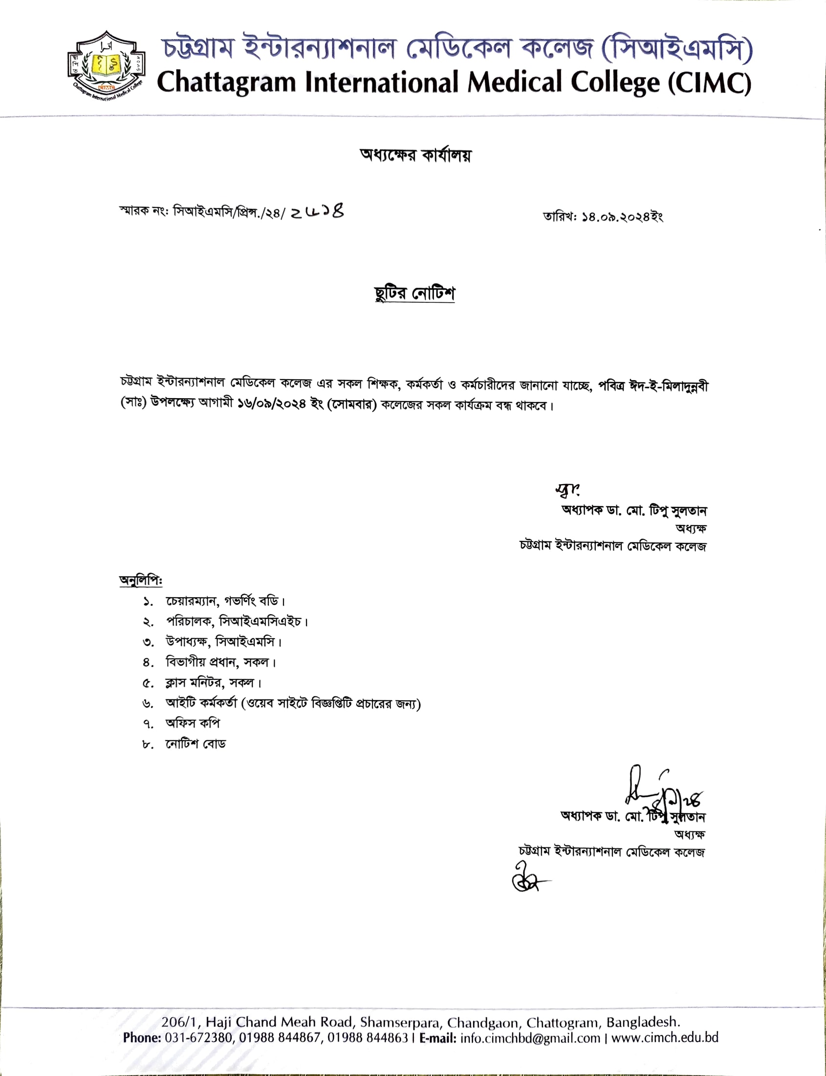 ছুটির নোটিশ |
