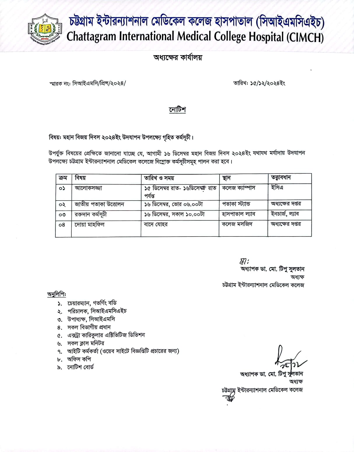 মহান বিজয় দিবস ২০২৪ইং উদযাপন উপলক্ষ্যে গৃৃহিত কর্মসূচী