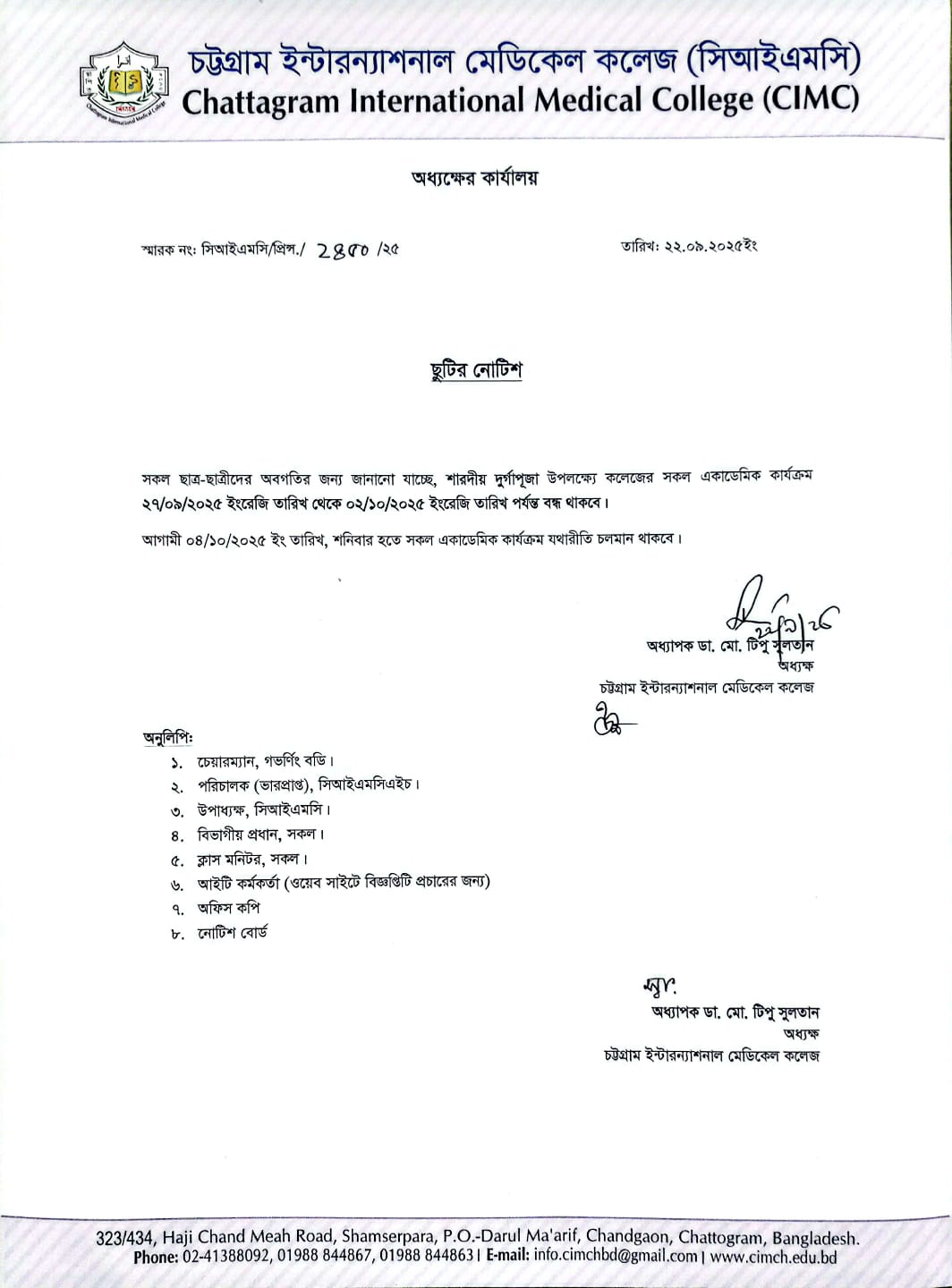 ছুটির নোটিশ |
